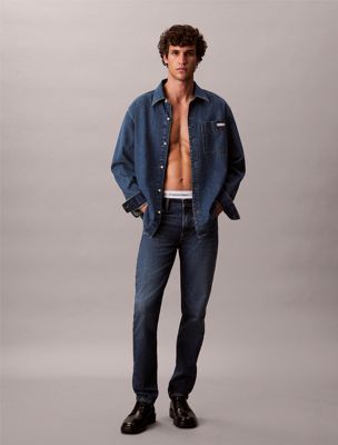 Notre jean signature. La coupe droite par excellence. Avec une taille normale, une silhouette ajustée aux hanches et aux cuisses et une jambe droite classique.