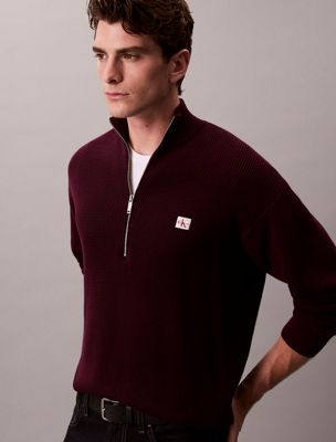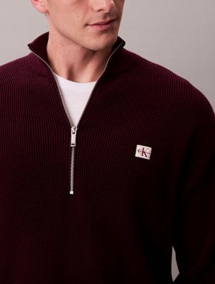 Pull relaxed partiellement zippé en coton gaufré