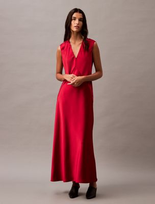 129,90 €(TVA comprise)Coupée dans le biais, cette robe moderne est confectionnée en satin lisse et présente une silhouette longue et élégante. Ce modèle sans manches est doté d'une encolure en V et de coutures parfaitement finies. Cette robe est dotée de volants doux à l'ourlet.