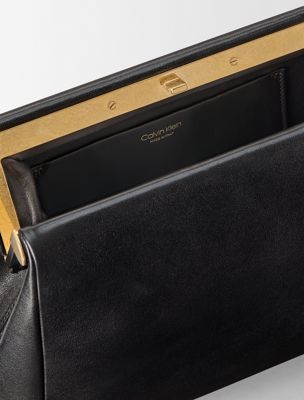 Doté d'un design structuré caractéristique, ce sac élégant présente un cadre métallique gainé de cuir de veau ciré brillant. Il peut être porté à la main ou en bandoulière.